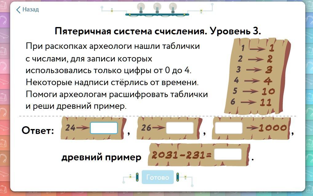 цифра каждого разряда умножается на 5 в соответствующей степени: единицы на 5^0, десятки на 5^1, сотни на 5^2 и т.д.