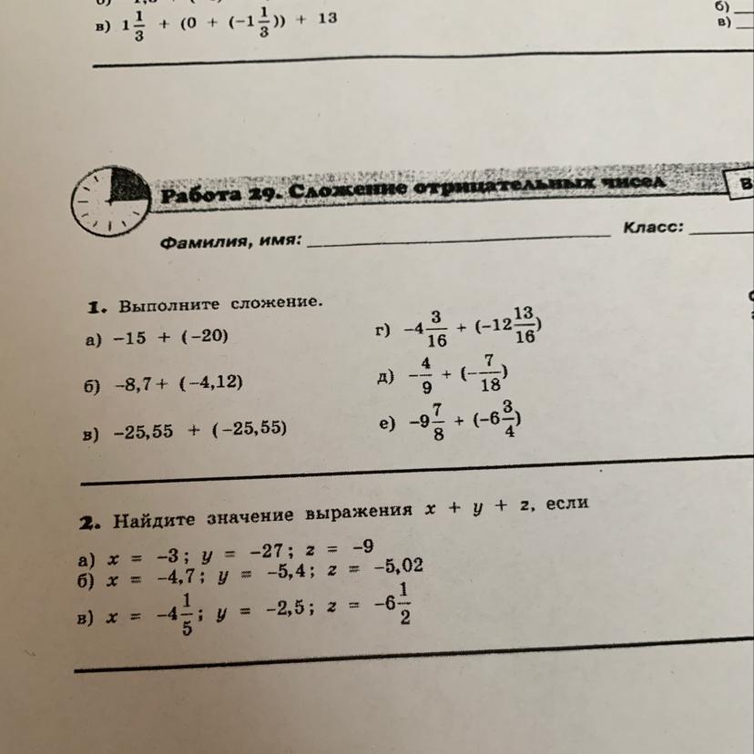 1.е) -9(7/8) + (-6(3/4))= -9(7/8) -6(3/4)= -9(7/8)-6(6/8) = -15(13/8)=-16(3/8)