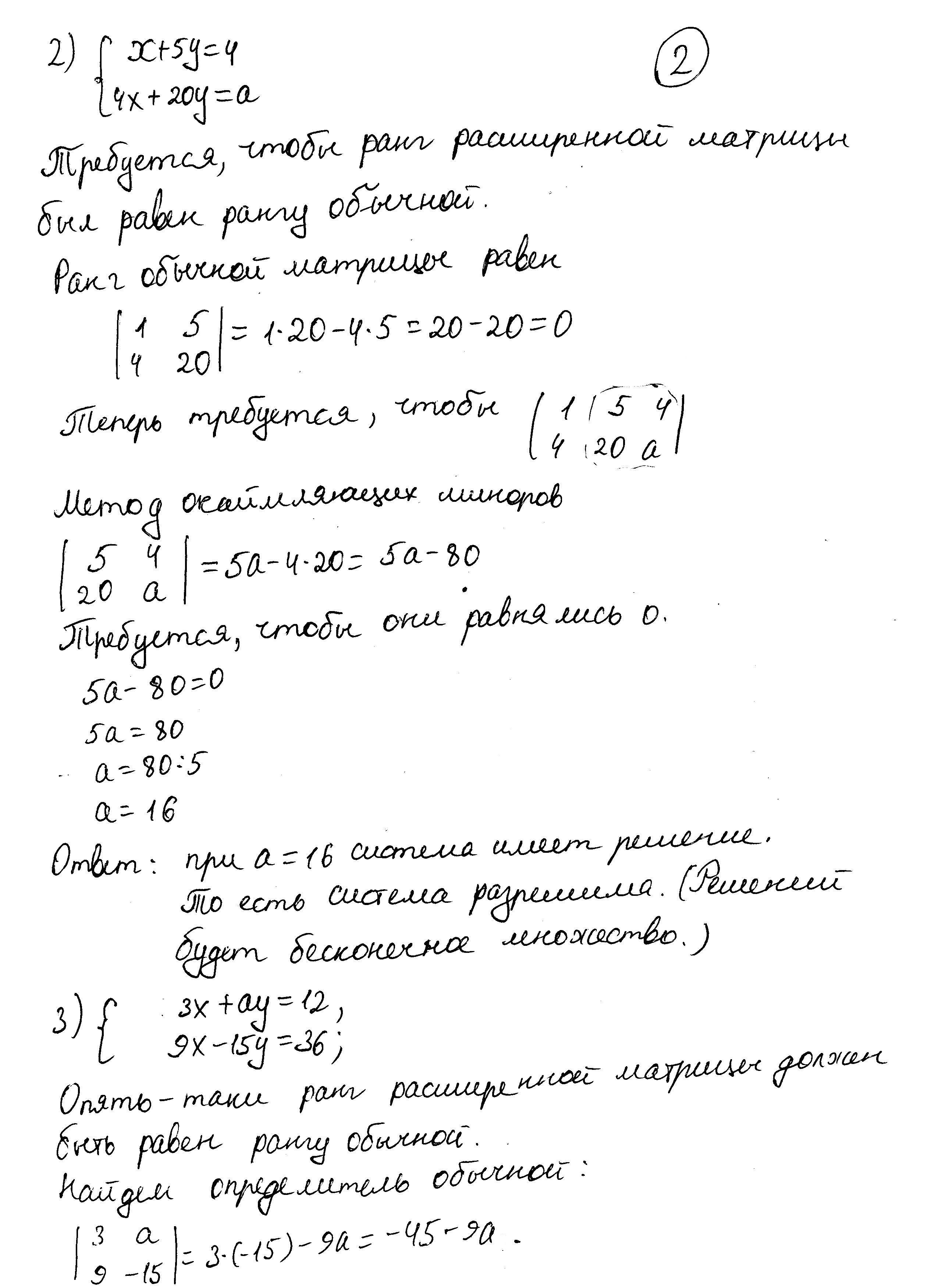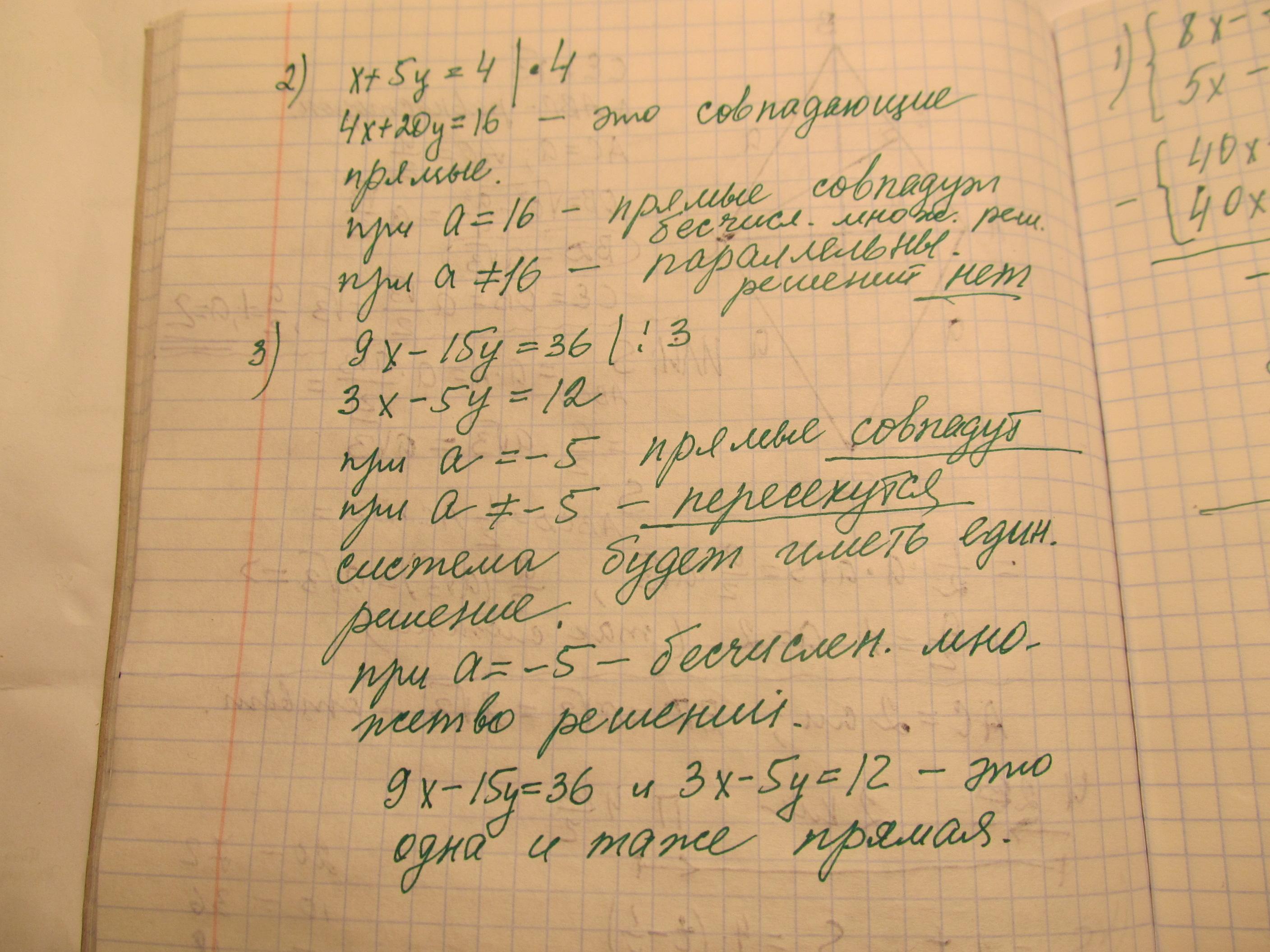3) при любом a система имеет решение (при а=-5 бесконечно много, при другом а будет единственное решение)