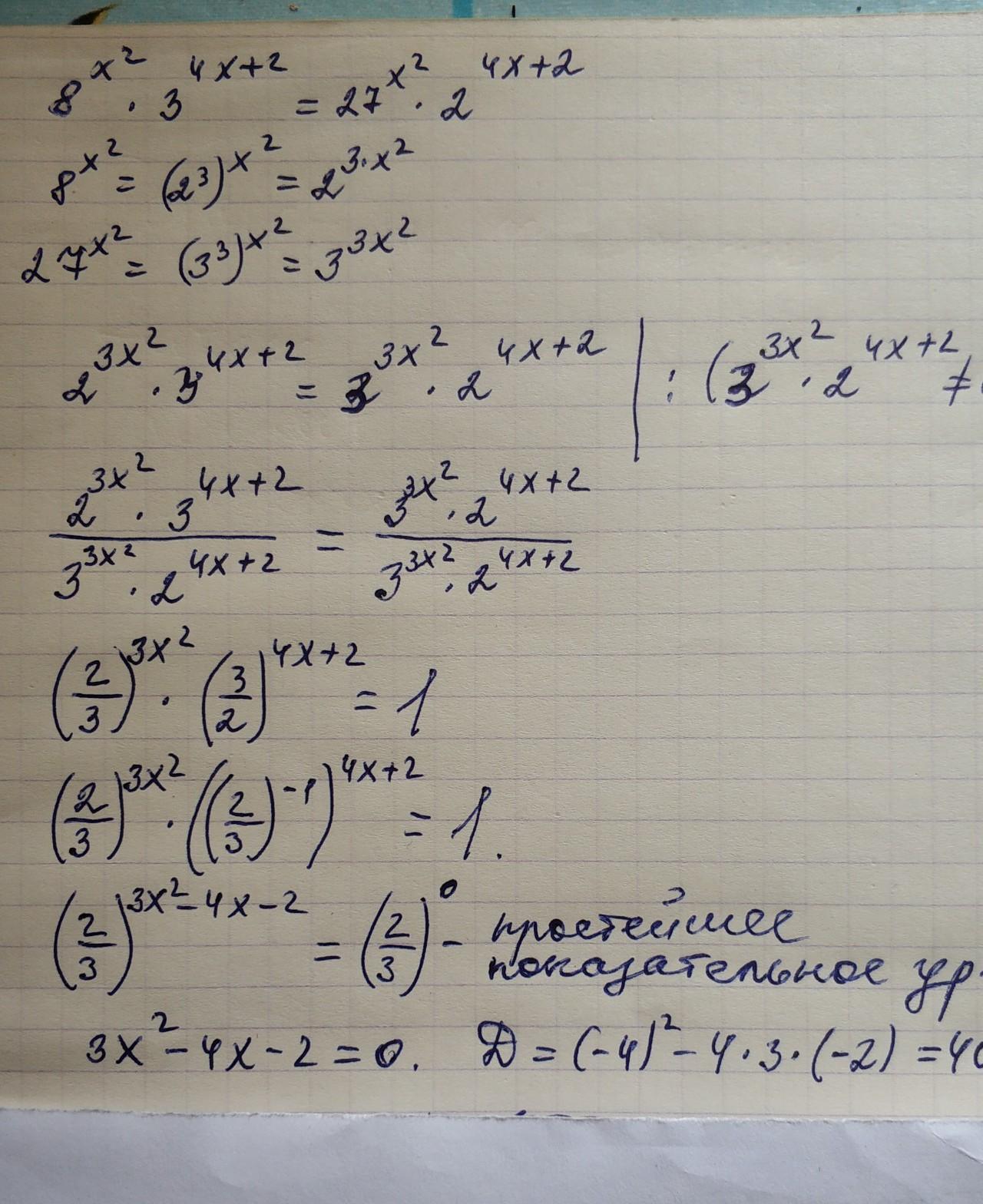 8^x^2 * 3^4x+2 = 27^x^2 * 2^4x+2