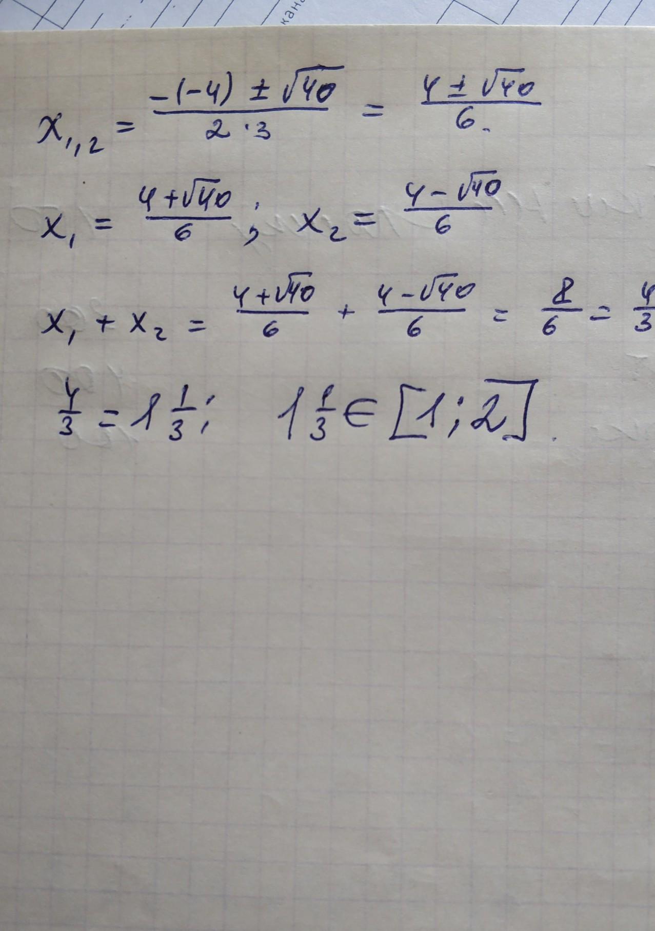 сумма корней х1 + х2 принадлежит промежутку [1;2]