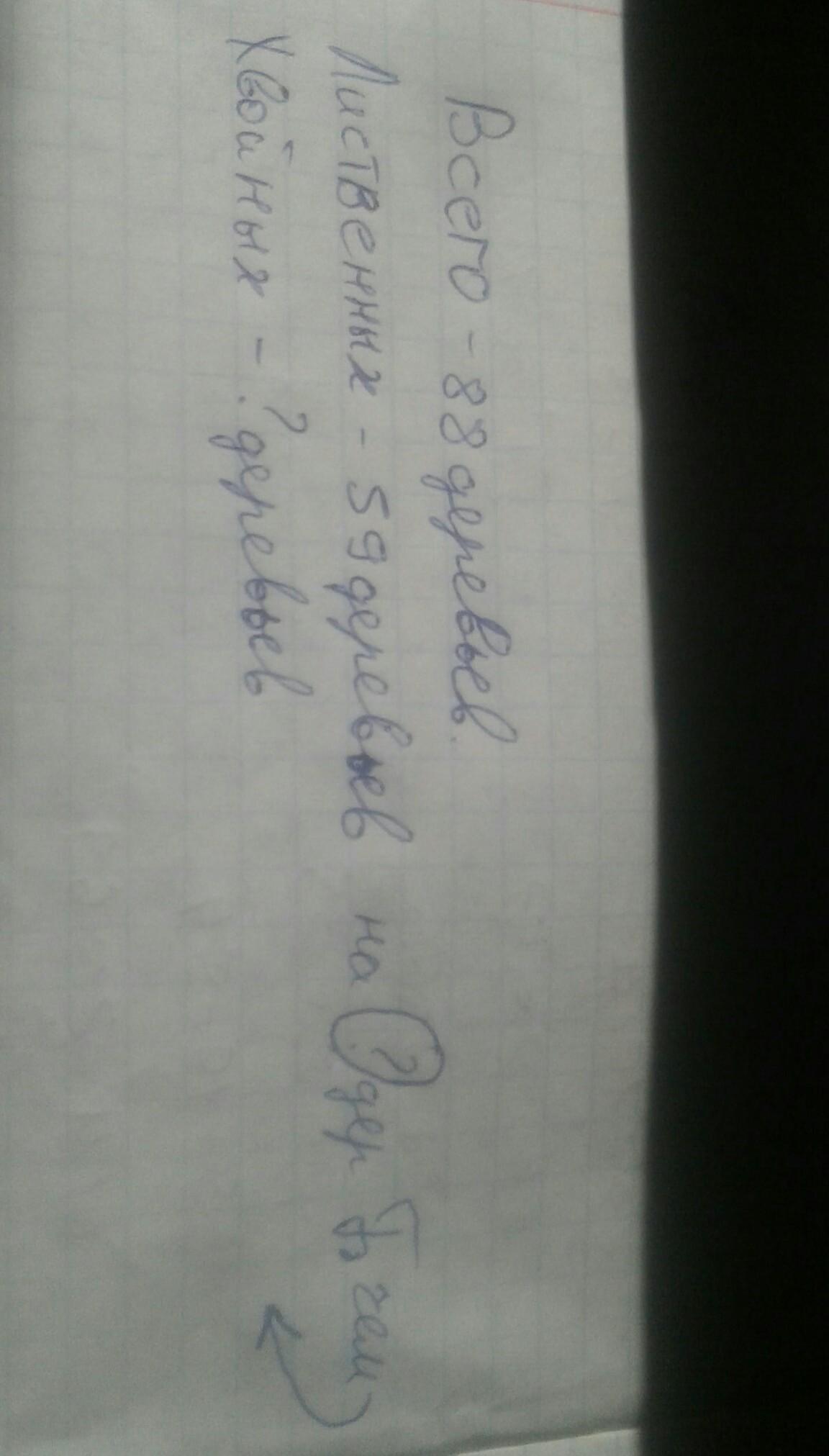 2)59-29=30 деревьев на столько больше лиственных деревьев, чем хвойных.
