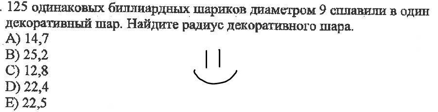 1/6π·9³·125=1/6π·D1³,где D1-- диаметр декоративного шара