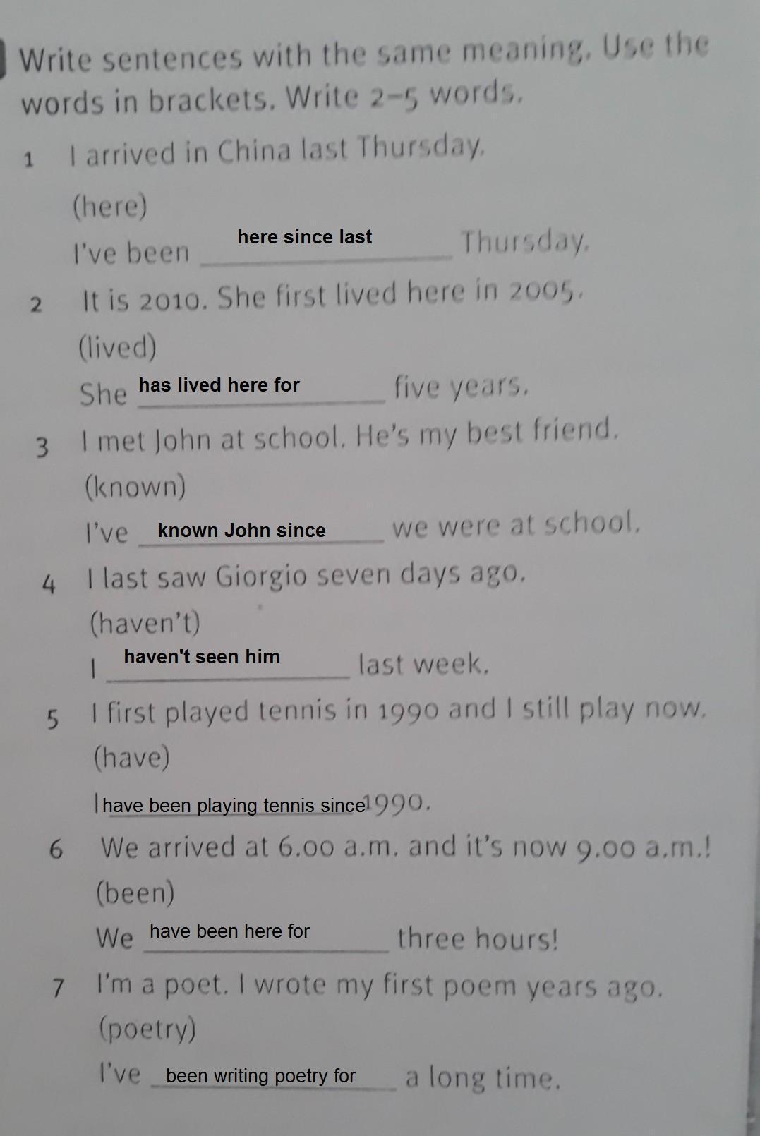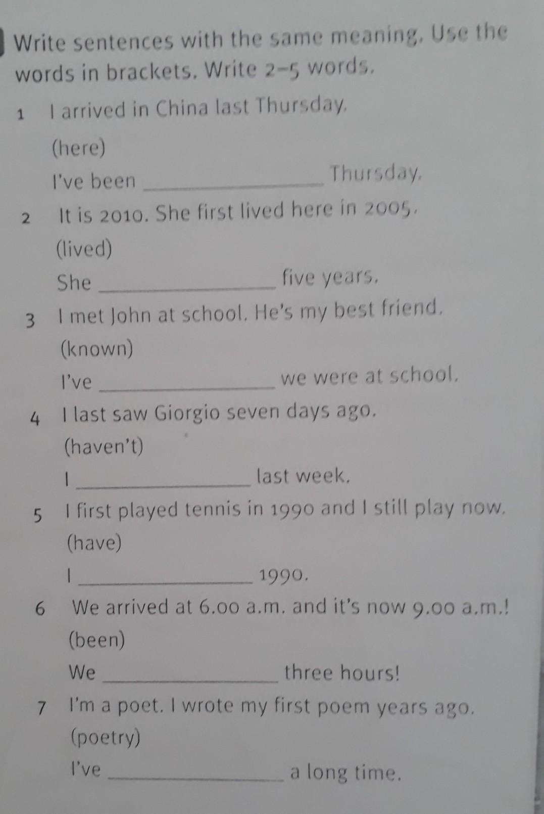 write the sentences with the same meaning. Use the words in brackets. Write 2 5 words.