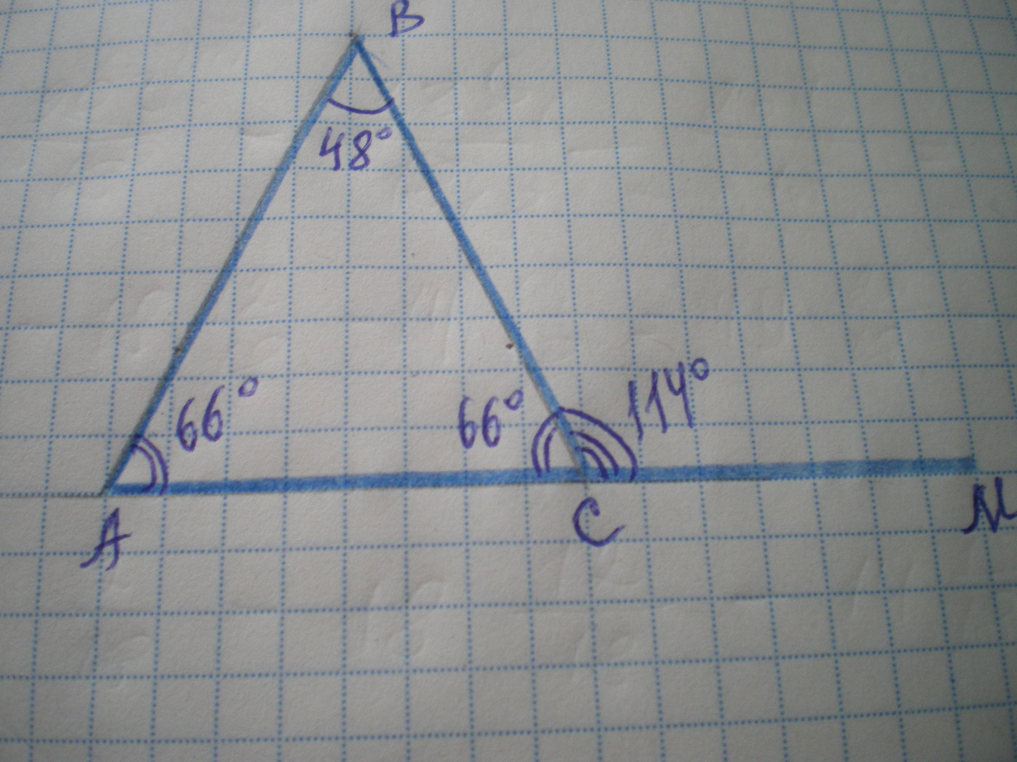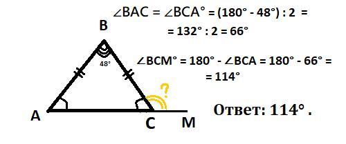 Дано: ΔАВС, АВ=ВС, ∠В=48°. Найти ∠ВСМ.