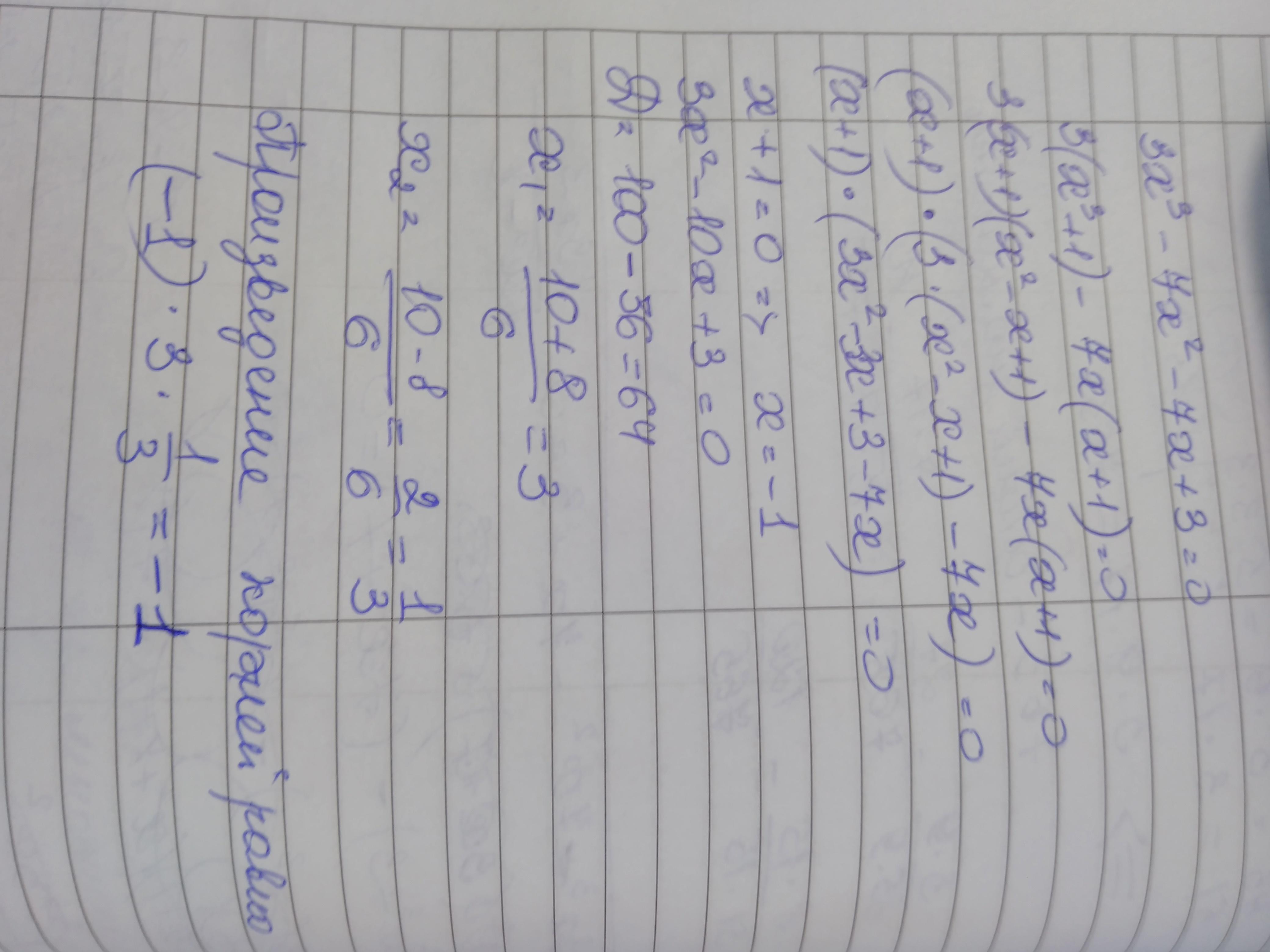 Разложим уравнение на множители (в предпоследнем шаге мы нашли корни квадратного уравнения и подставили из в разложение):