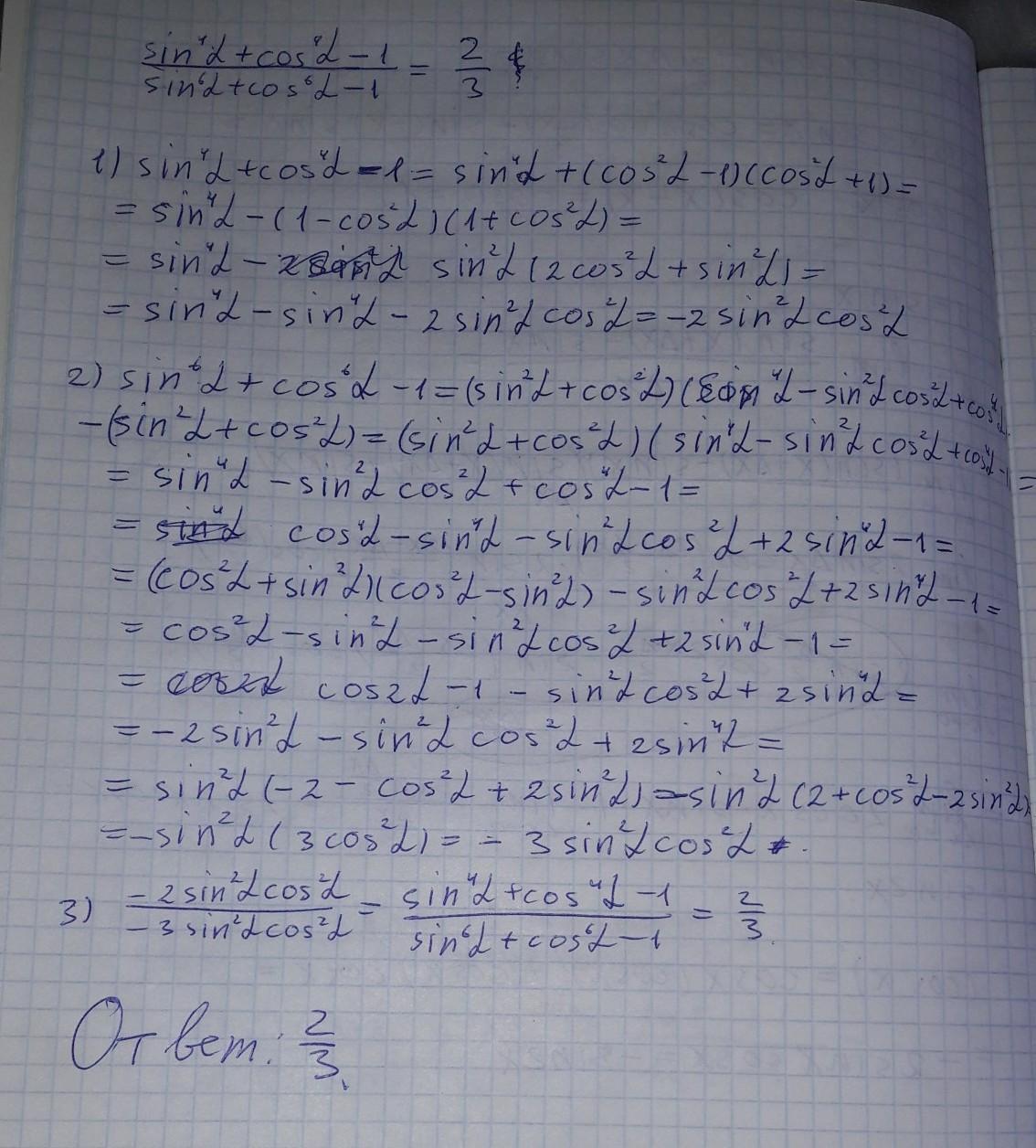 -1/2sin²2α /(-3/4·sin²2α)=2/3.