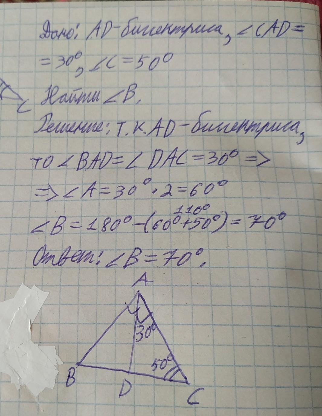 В треугольнике АВС проведена биссектриса АD так, что <САD=30 градусов <с=50 градусов