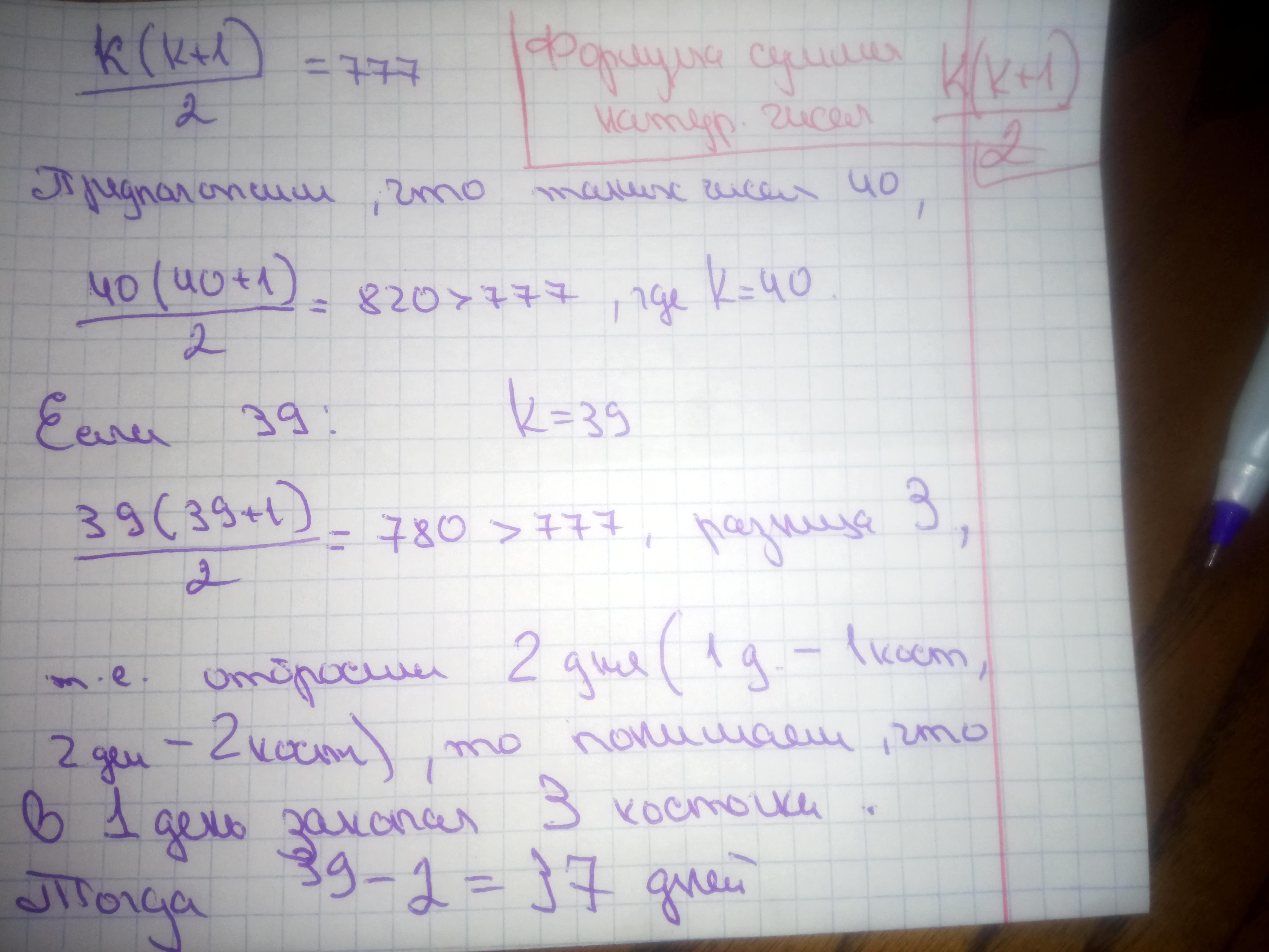Пёс Шарик закапывает каждый день на 1 косточку больше, чем в предыдущий день. За какое наибольшее число дней он сможет закопать ровно 777 косточек?