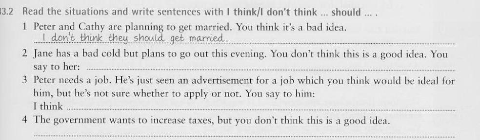 2 I don't think you should go out tonight. 3 I think you should apply for the job. 4 I don't think the govenment should increase taxes.