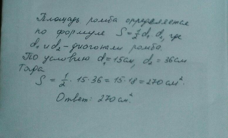 S = 1/2 * 15 * 36 = 270 см²