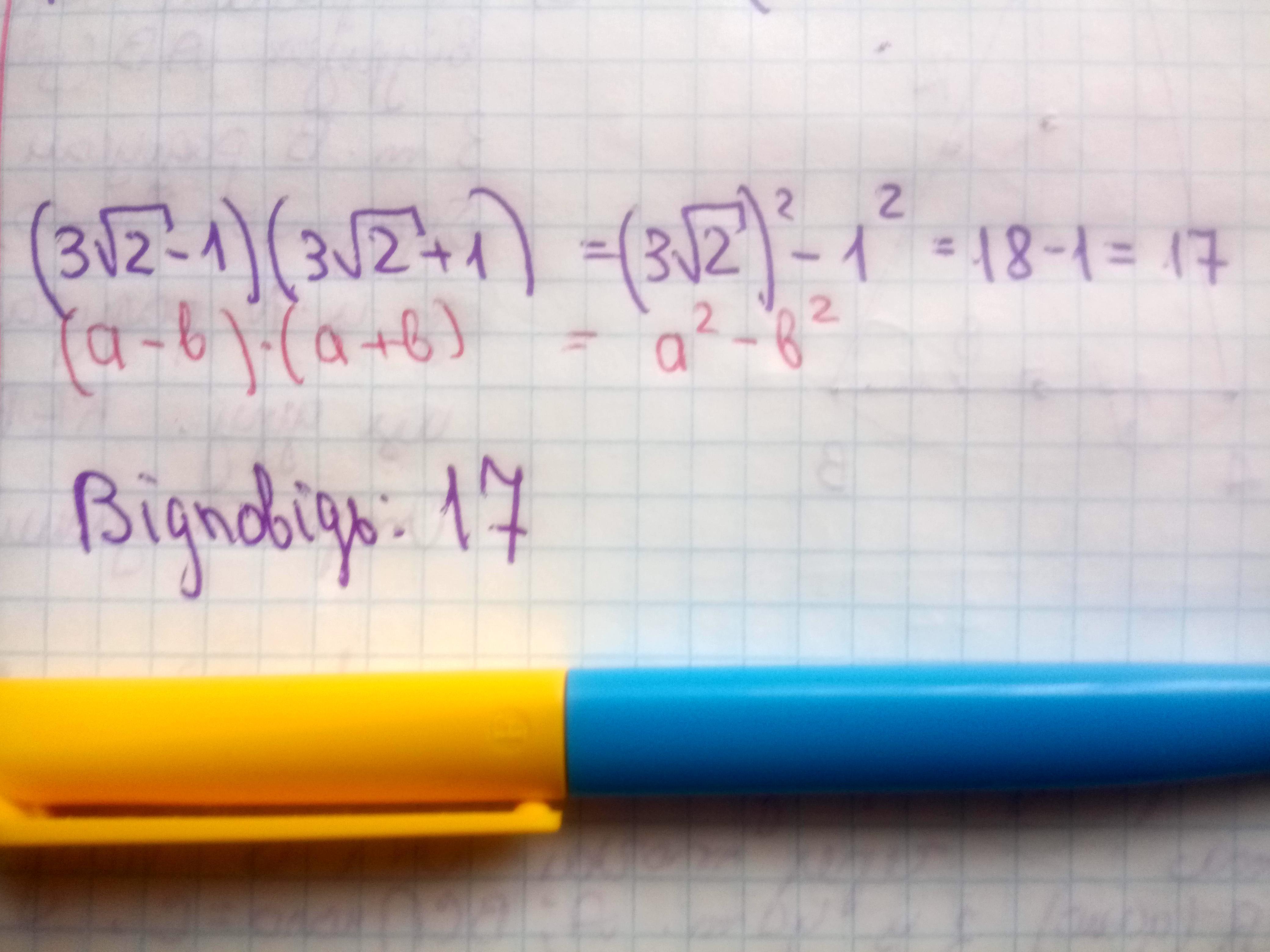 (3√2-1)(3√2+1)= (√18-1)(√18+1)= √18²-1²= 18-1 = 17