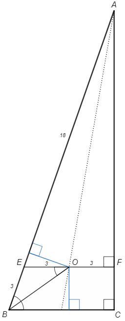 Точка О лежит на биссектрисе угла ABC, следовательно равноудалена от сторон угла. Расстояние между параллельными постоянно, поэтому достаточно найти FC.