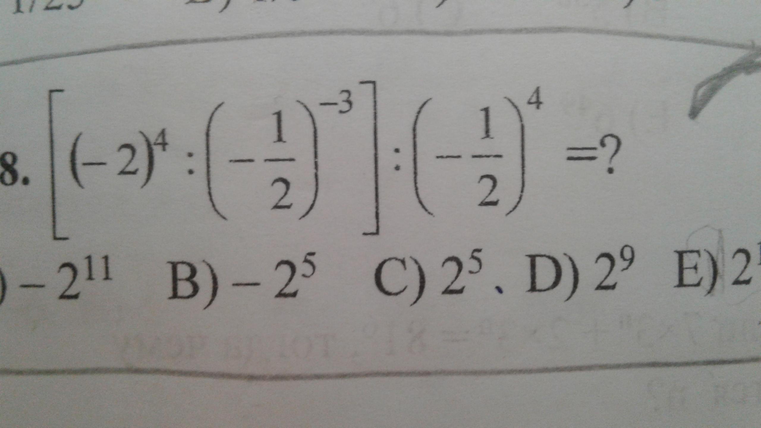 ИЛИ 2⁴:(-2³):2⁻⁴=-2⁴⁻³⁺⁴=-2⁵.
