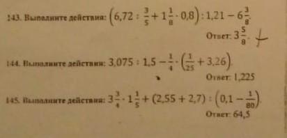 1. (6,72:3/5+1,1/8*0,8) : 1,21 - 6,3/8 = (6,72:0,6 + 9/8*8/10) : 1,21 - 6, 3/8 = (11,2+0,9) : 1,21 - 6,3/8 = 12,1 : 1,21 - 6, 3/8 = 10 - 6, 3/8 = 3, 5/8