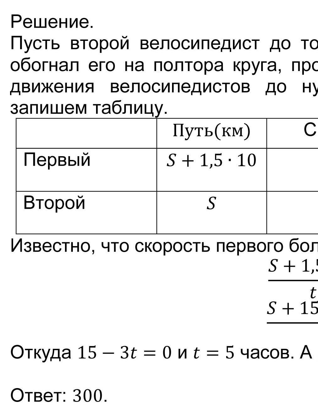 с постоянными скоростями. Известно, что радиус трассы первого вело-