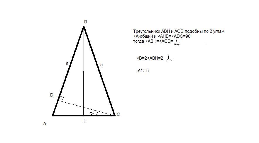 в этой задаче, если а-боковая сторона, а b-основание, то угол при вершине будет 2α, тогда