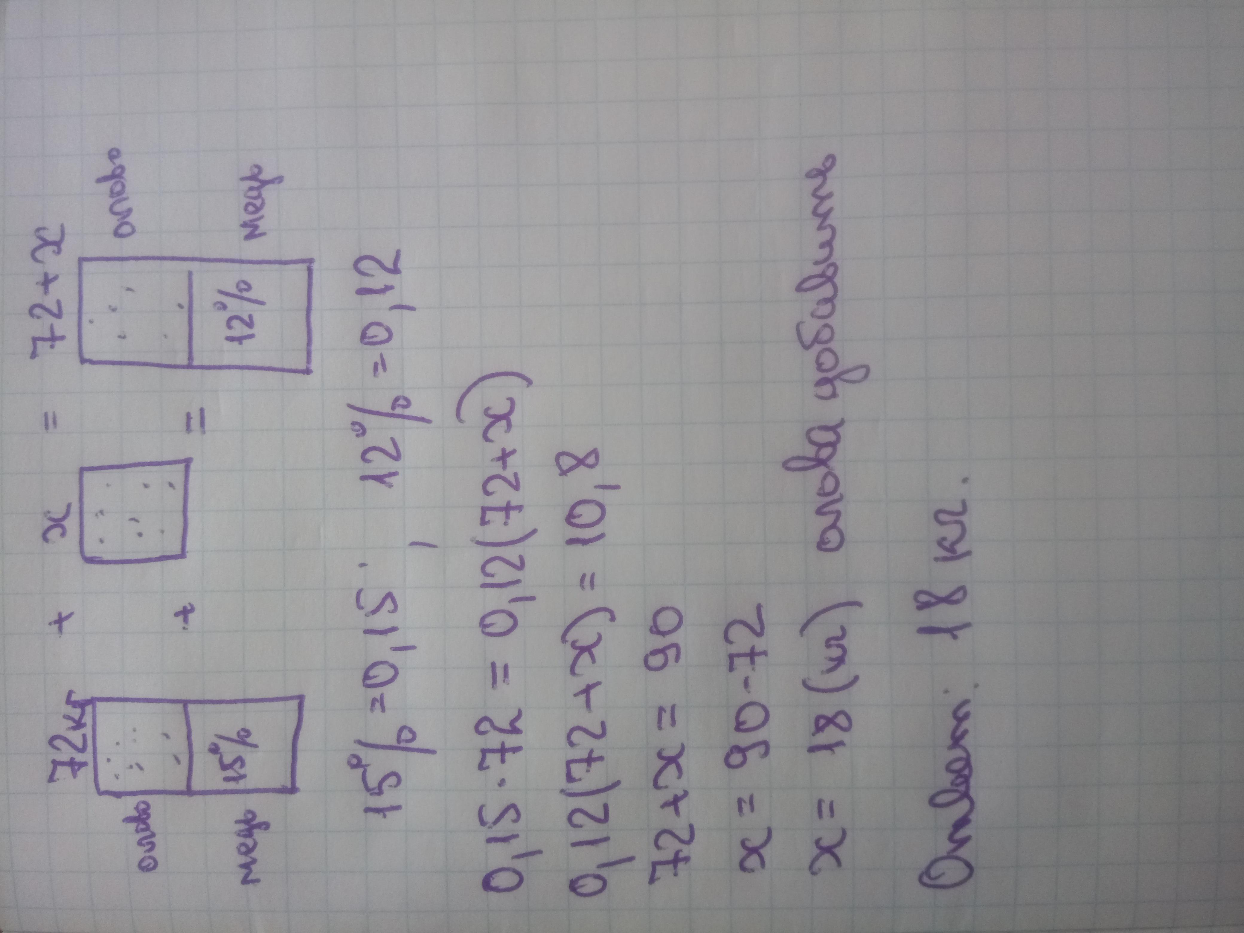 слиток сплава олова и меди равен 72 кг из них 15%меди сколько надо добавить олова чтобы было 12%меди