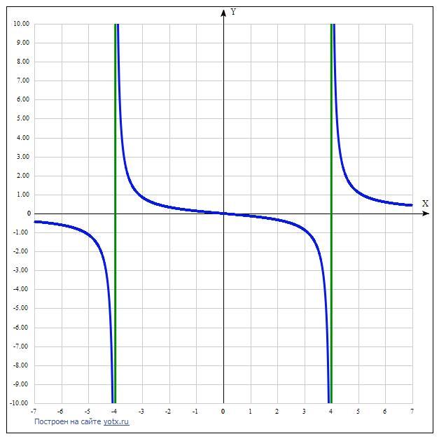 а) Вертикальные асимптоты – определены: х = -4 и х = 4.