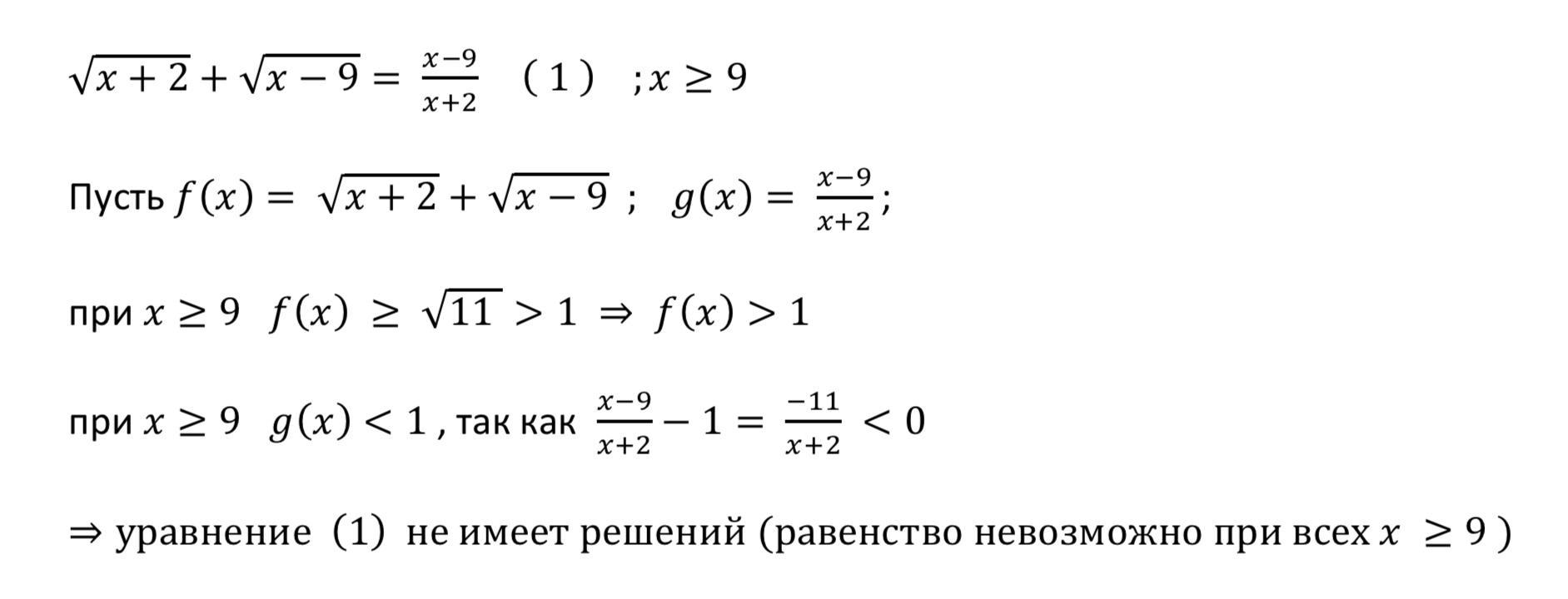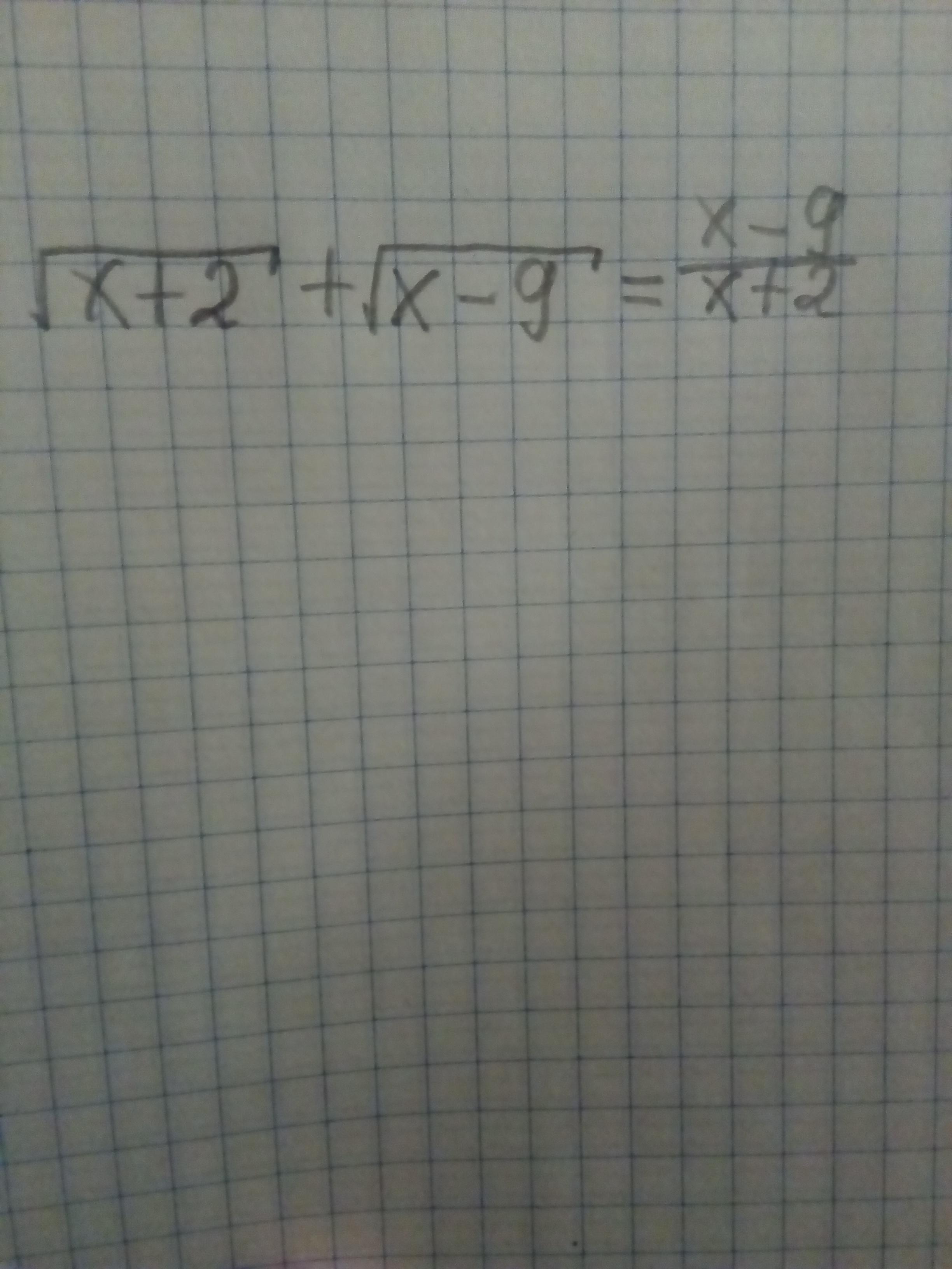 ОДЗ левой части x+2≥0; x≥-2 и x-9≥0; x≥9