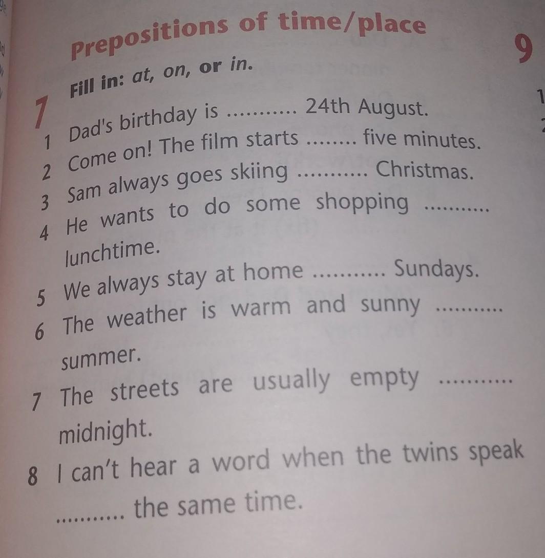 1 Dad's birthday is on the 24th August.