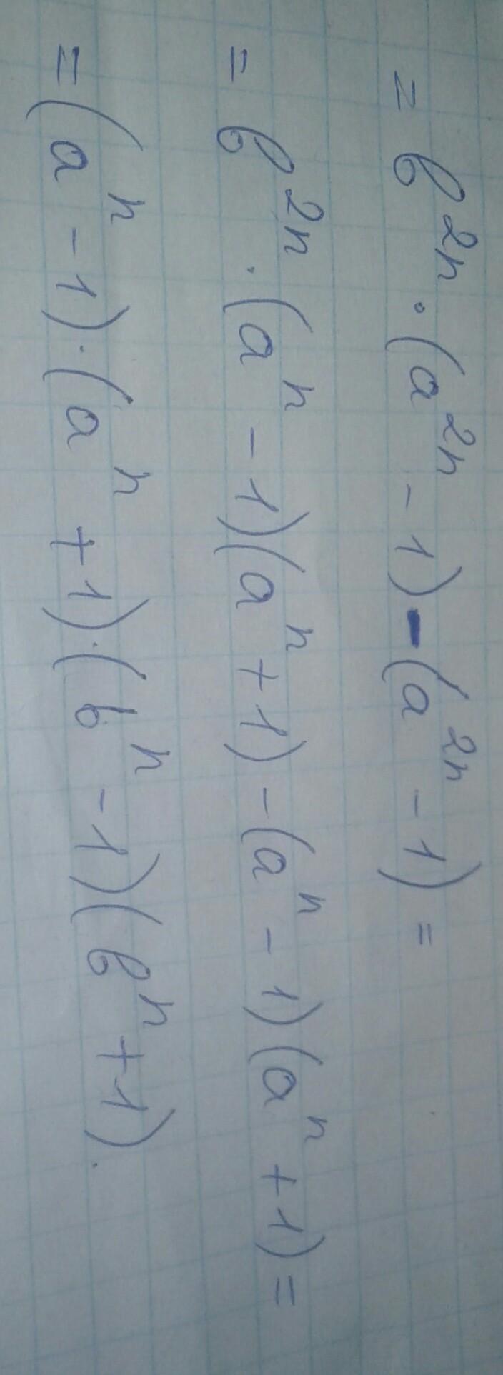 Представьте выражение в виде произведения четырёх множителей a^2n*b^2n-b^2n-a^2n+1 где n-натуральное число