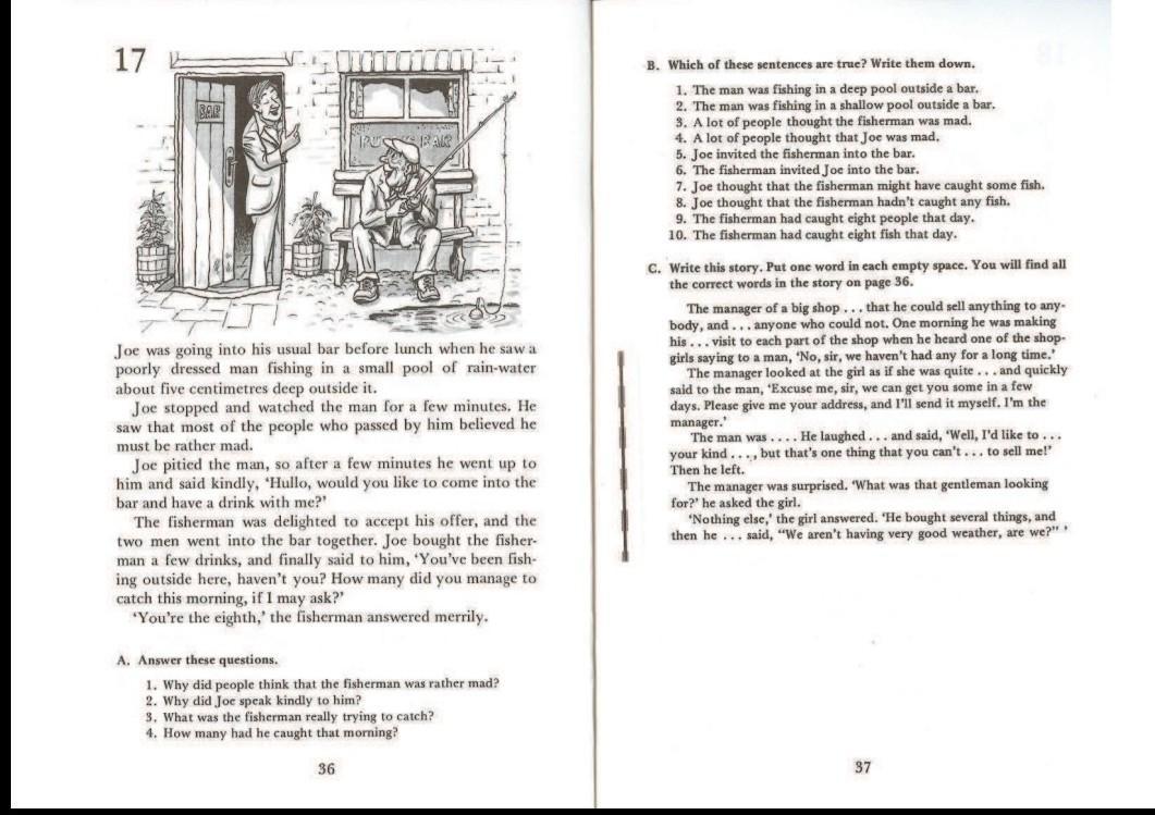 3. The fisher man was trying to catch kind people who can buy him drinks in the bar.