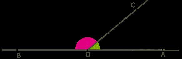 Дан развёрнутый угол ∡BOA. Луч OC делит угол на части — α и β.