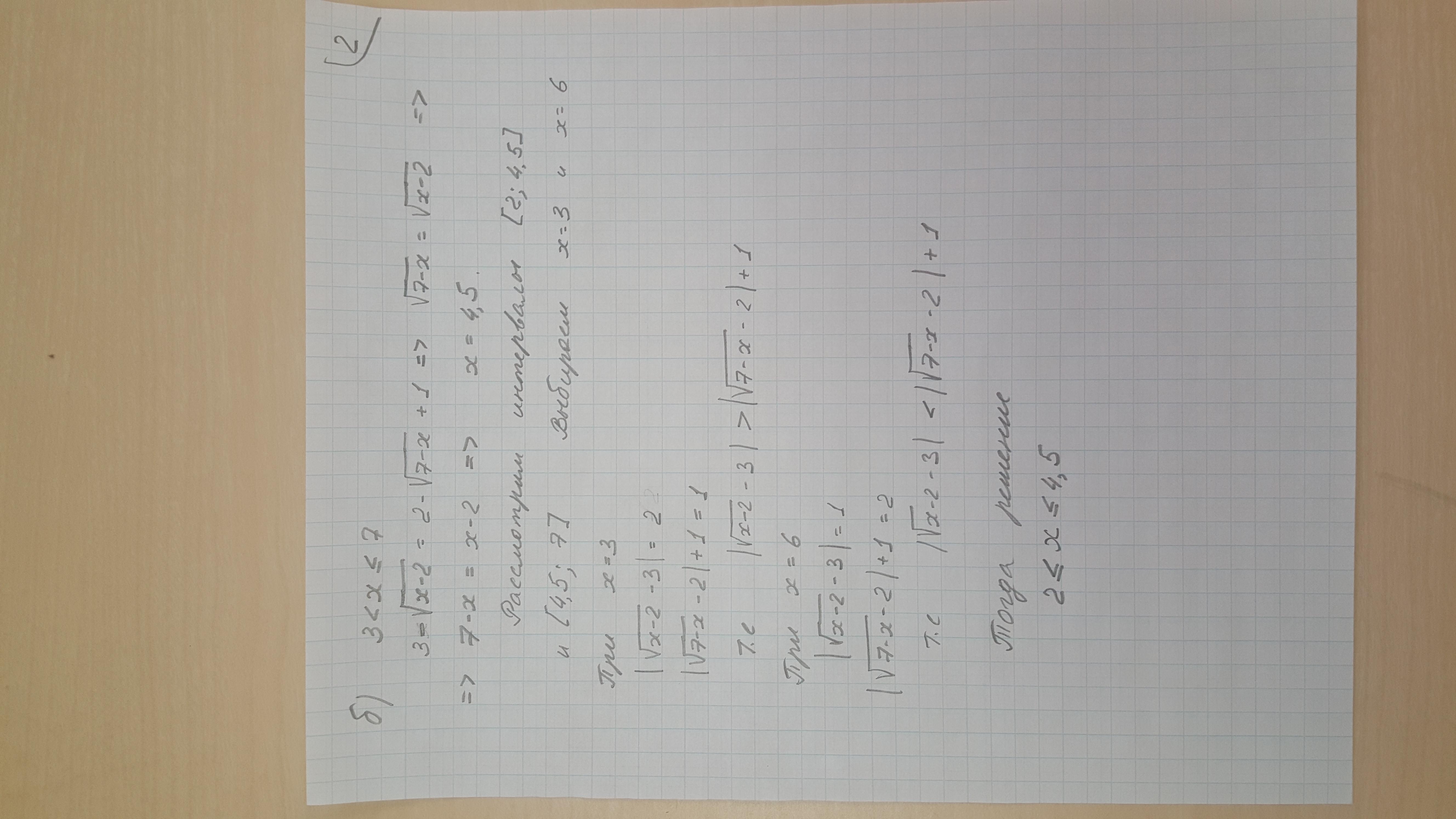 обидно) почти дописала решение и оно не сохранилось... у меня получилось, что в ответе вся ОДЗ: 2 <= х <= 7