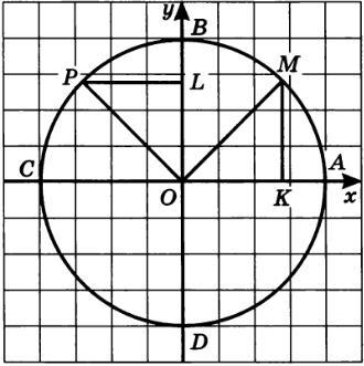 (точке M соответствует число t, а точке P - число t + pi / 2)