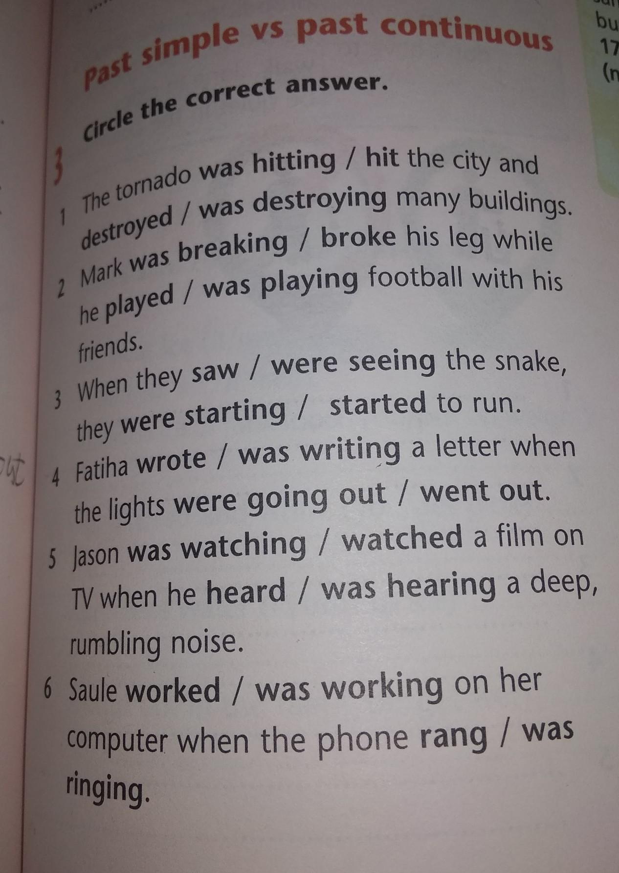 5)was watching, heard
