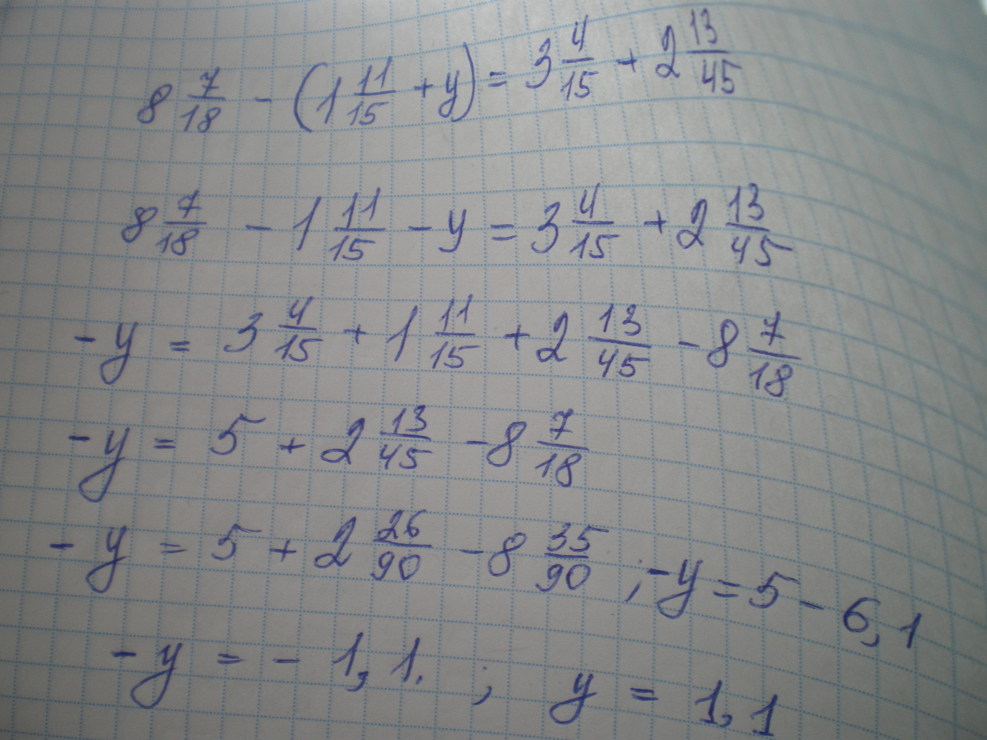 8 целых 7/18-(1 целая 11/15+у)=3 целых 4/15+2 целых 13/45