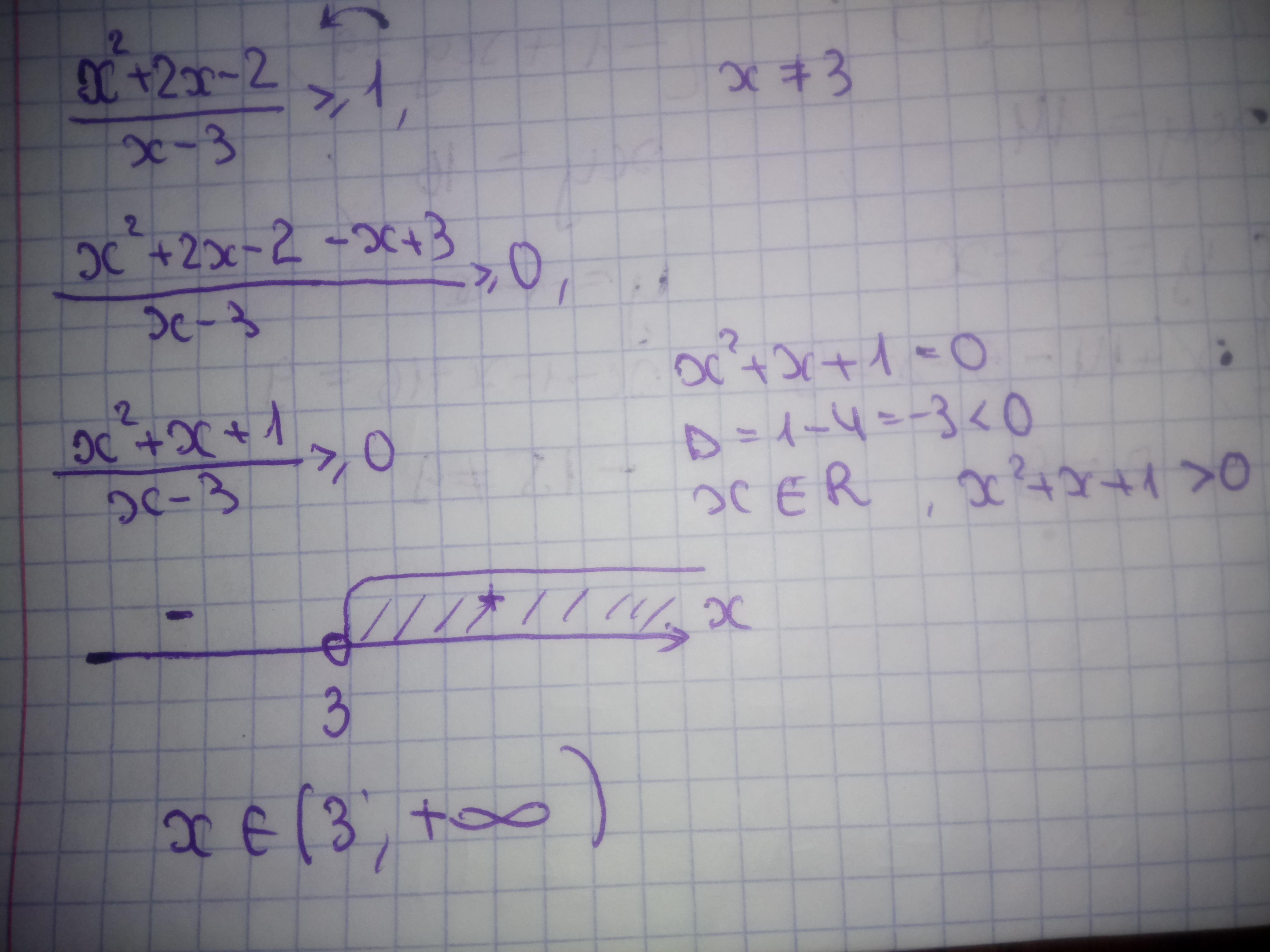 (*): ∀x ∈ ℝ: x²+x+1 > 0 ⇒ можно разделить левую и правую части неравенства на x²+x+1 (знак не изменится, так как это выражение положительно при всех x).