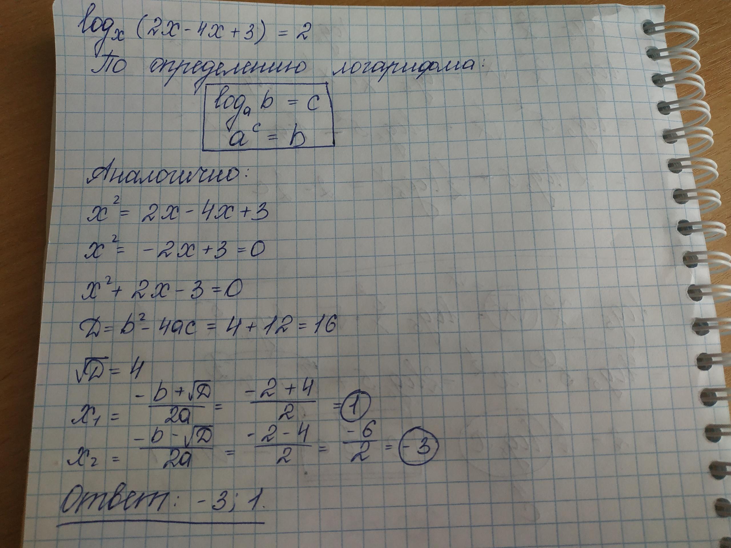 Для решения использовали определение логарифма: показатель степени, в которую надо возвести основание, чтобы получить данное число (или записано формулой в рамочке в самом решении)