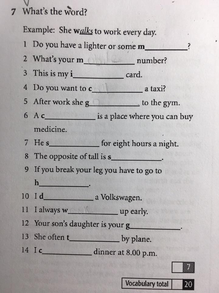 1 matches 2 mobile 3 identification 4 call 5 goes 6 chemist's 7 sleeps 8 short