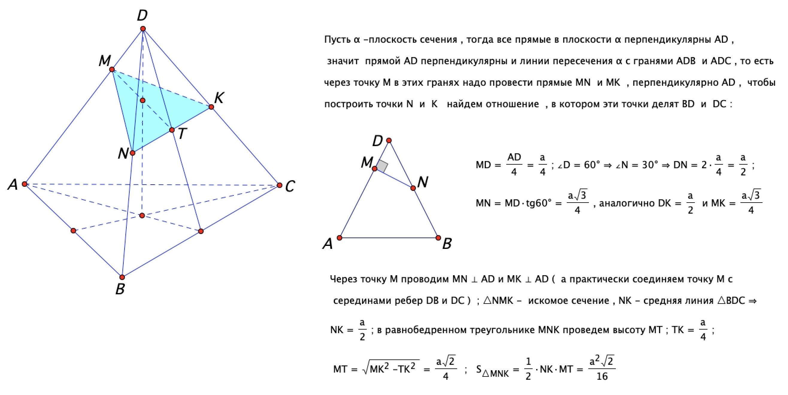 кулярна до ребра AD. Знайдіть площу цього перерізу.