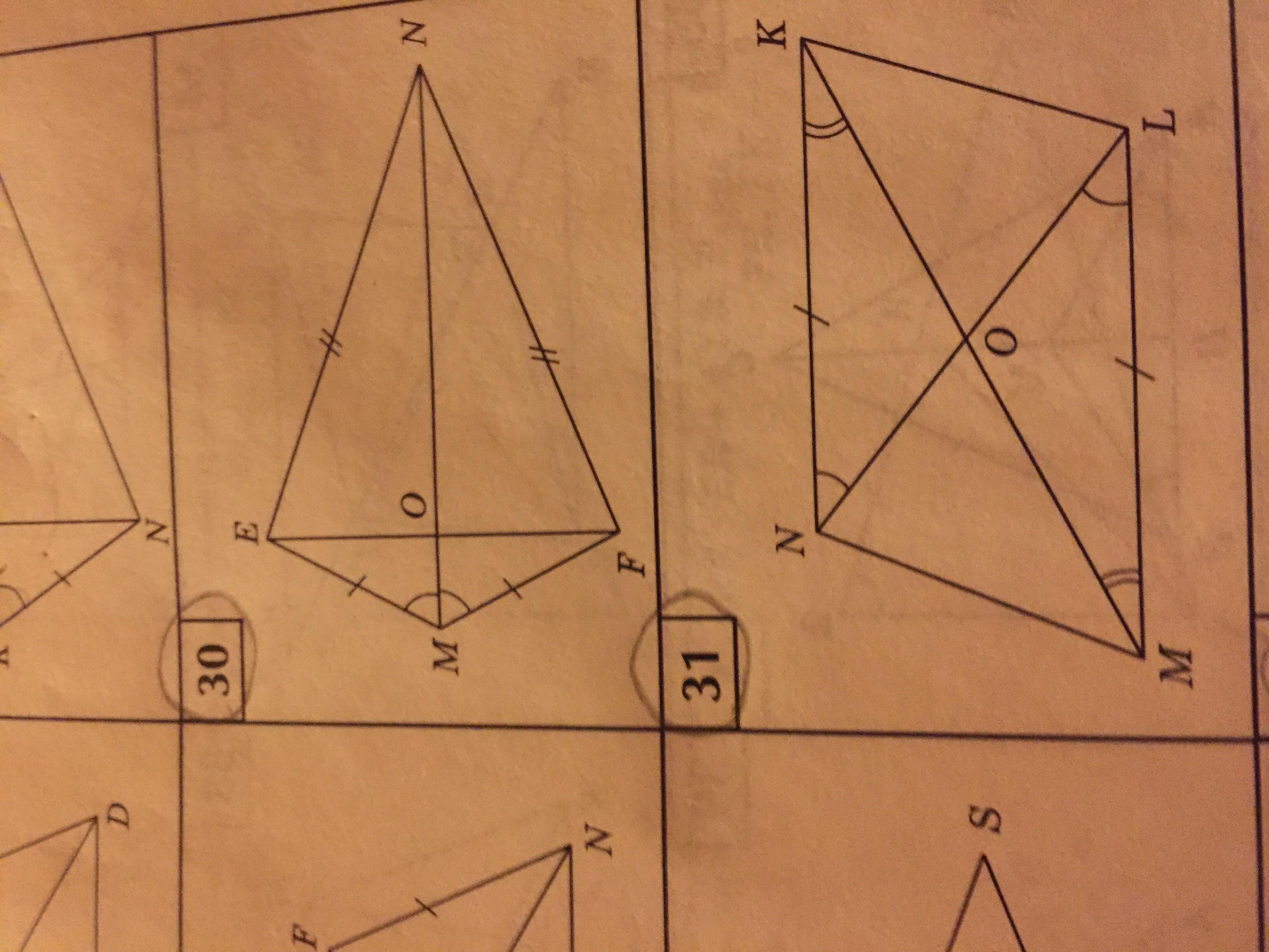 31) ΔNOK=ΔMOL (NK=ML , ∠ONK=∠OLM , ∠OKN=∠OML )