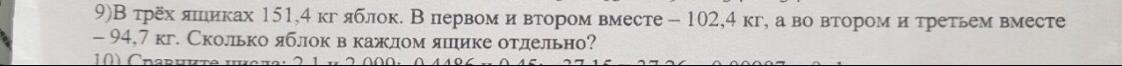 В первом-56,7кг, во втором - 45,7кг, в третьем - 49кг яблок