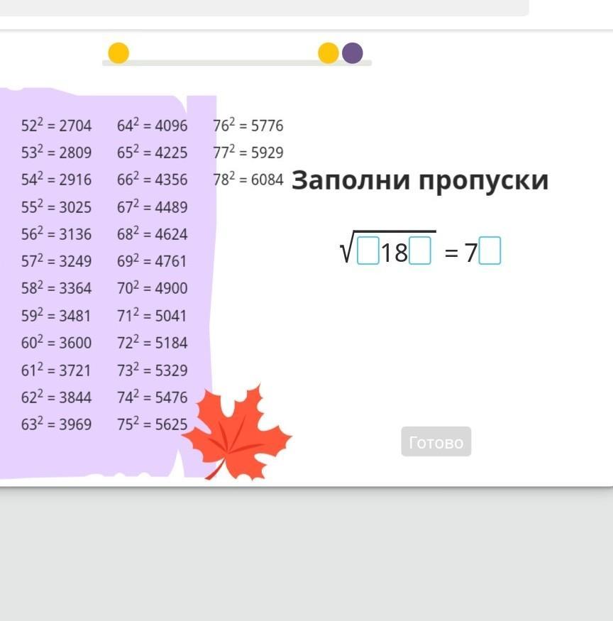 72^2=5184, значит в первом пропуске 5, во втором 4, в третьем 2