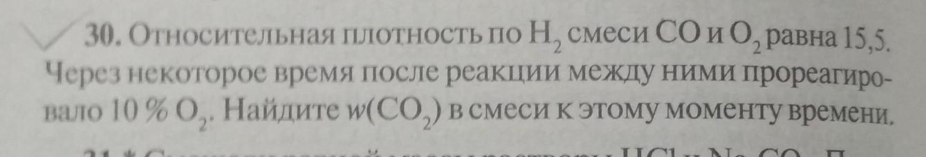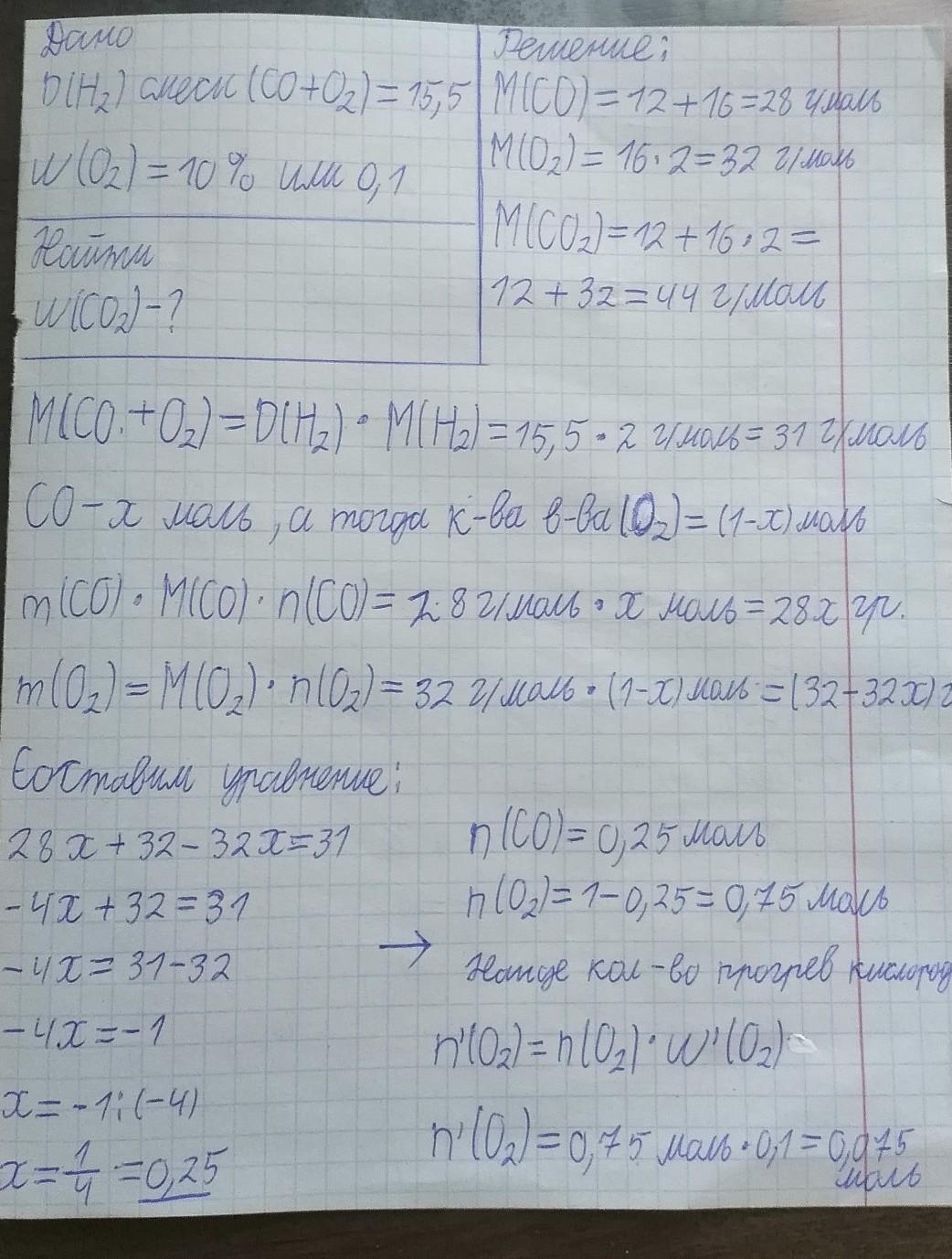 М(СО+О₂) = D(H₂) cм(СО+О₂)*М(Н₂) = 15,5*2 г/моль = 31 г/моль
