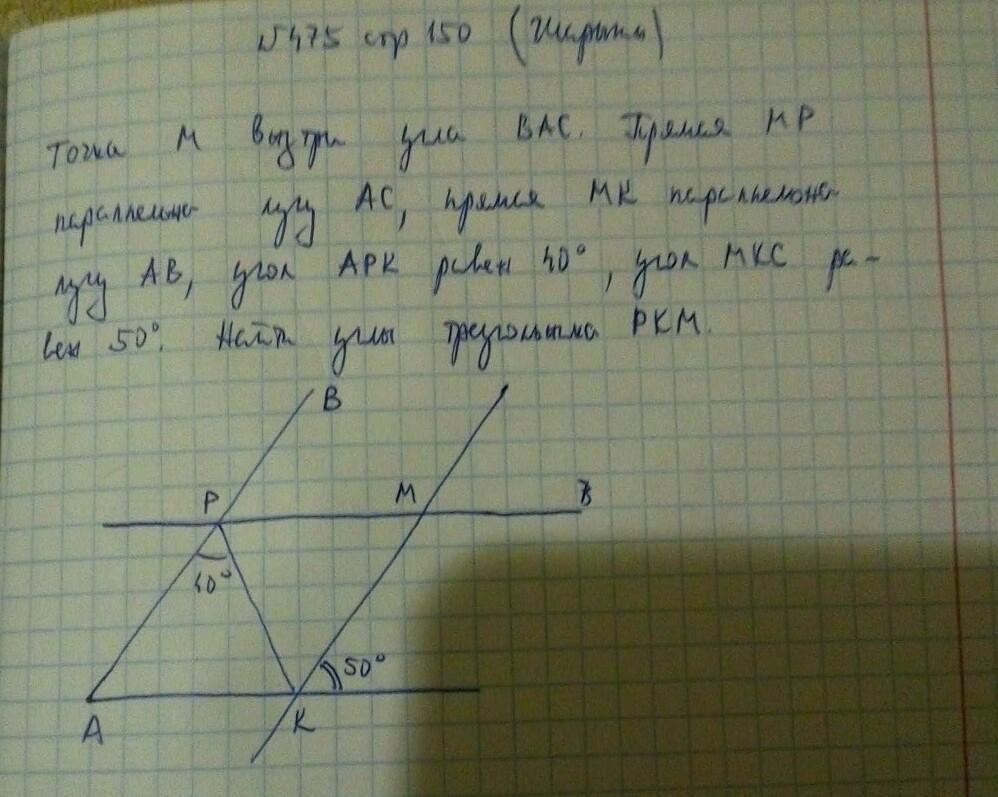 2) т.к. РМ||АС, следовательно, угол РМК=углу МКС=50гр (НЛУ)