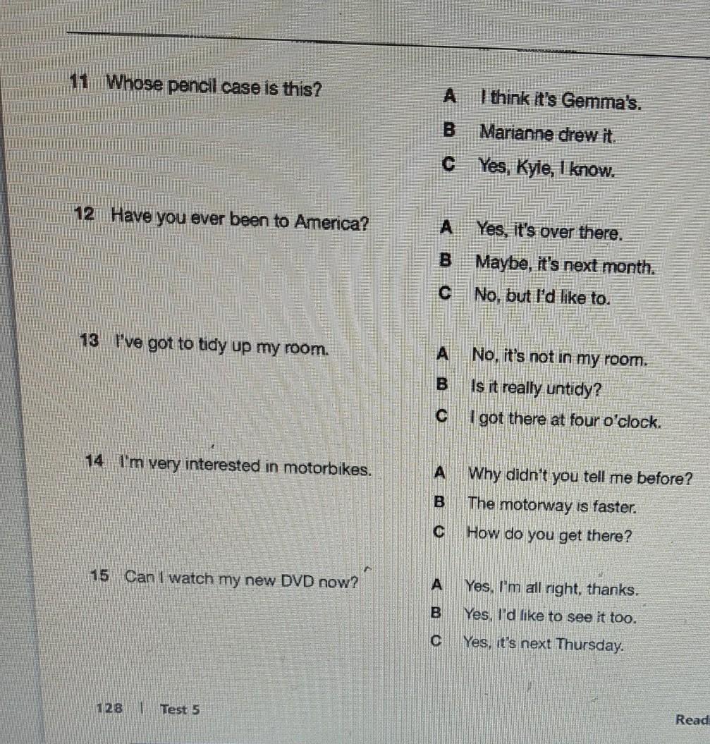 14 - A ( Я интересуюсь мотоциклами. Почему ты это не сказал раньше?)