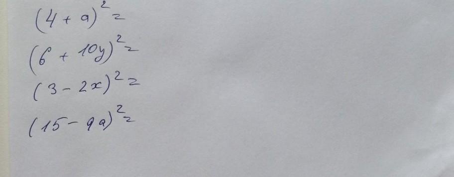 4) (15-9a)^2= 225-270a+81a^2