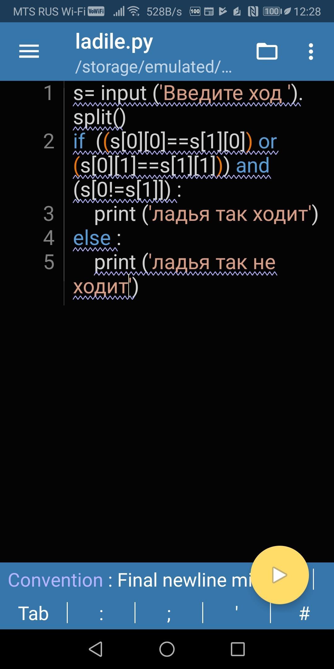 да, я знаю, но там стоит "or", а не "and" и проверяется сходство хотя бы одной координаты, ну а вообще можно дописать ( if x1 == x2 and y1 != y2 or x1 != x2 and y1 == y2: ) тогда уже точно сомнений не возникнет