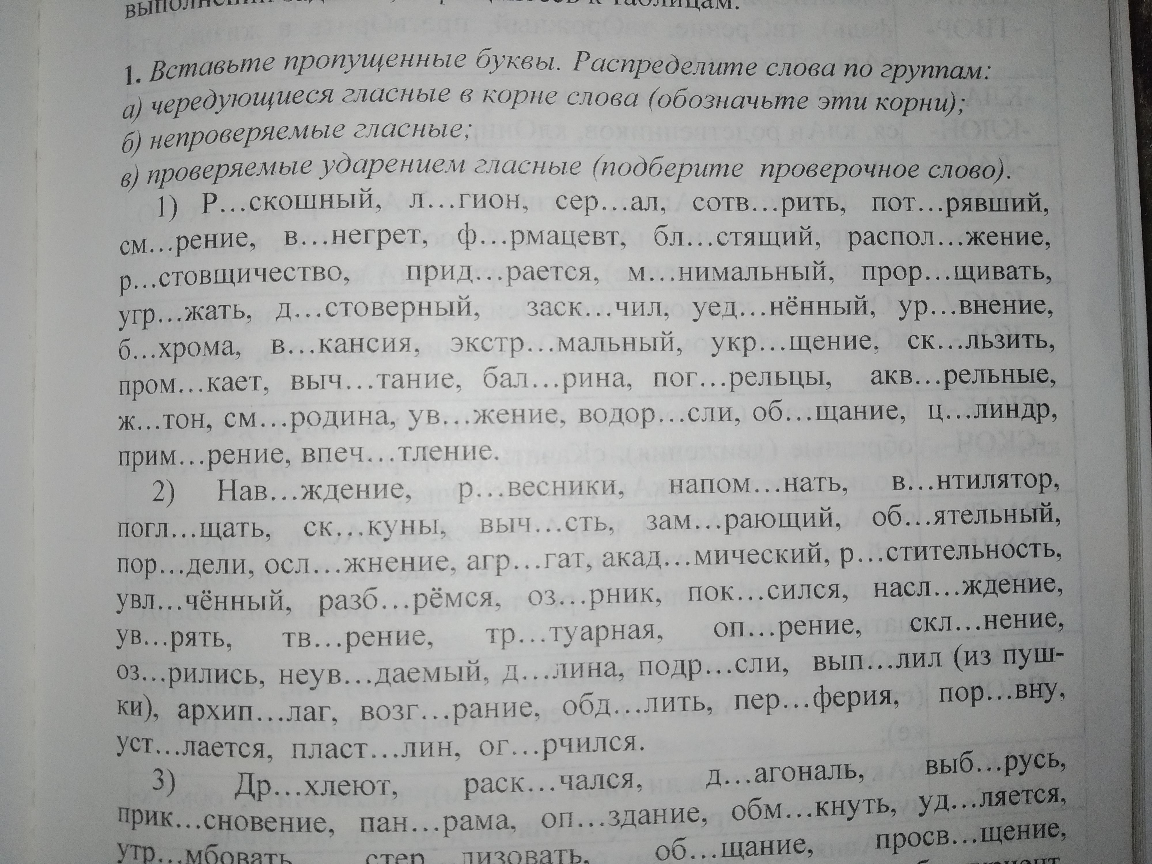 а) Сотворить, потерявший, смирение, блестящий, расположение, ростовщичество, придирается, проращивать, заскочил, уравнение, промокает, вычитание, погорельцы, водоросли, примирение.