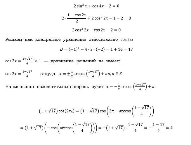 30. Найти значение выражения (1+корень 17)cos 2xо , где хо — наимень-