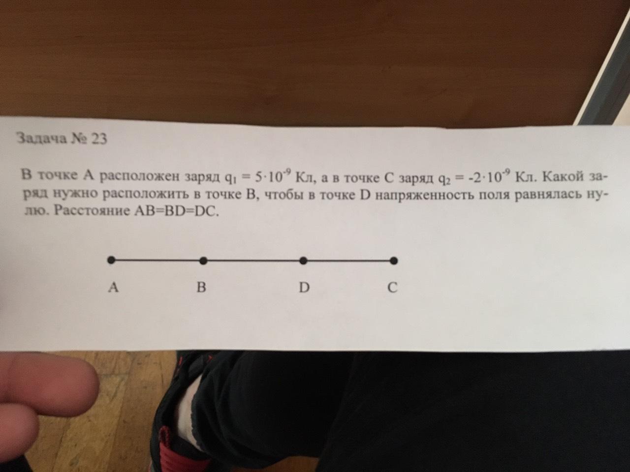 В точке А расположен заряд = 5 10* Кл, а в точке С заряд q2 = -2-10" Кл. Какой заряд нужно расположить в точке В, чтобы в точке D напряженность поля равнялась ну-