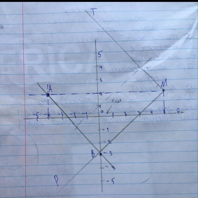 в (0; -3) и M (5; 2). Проведите прямую АВ. Через точку М проведите прямую т, параллельную прямой AB,