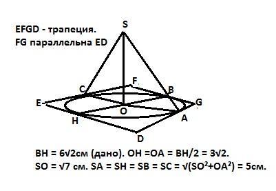 Расстояние от точки S до сторон трапеции - это гипотенуза прямоугольного треугольника с катетами - √7 см и 3√2 см.