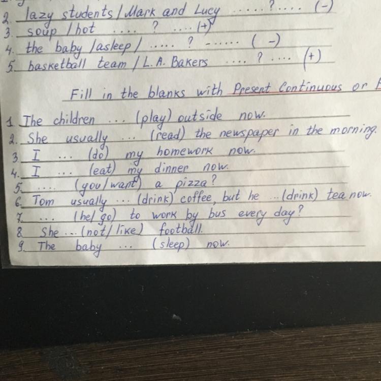 так же, почему в 5 задании не present continuous, а present simple (ведь тебя спрашивают:" хочешь ли ты пиццу?" , где вроде бы нужно использовать present continuous , ведь тебя именно в данный момент спрашивают :" хочешь ли ты сейчас пиццу? " ) . но глаголы наподобии like , want , hate (иначе говоря глаголы состояния (/эмоциональные по-другому) , которые невозможно увидеть или узнать(believe, know) , ну и другие виды глаголов) не могут использоваться в present continuous, ТОЛЬКО в SIMPLE.